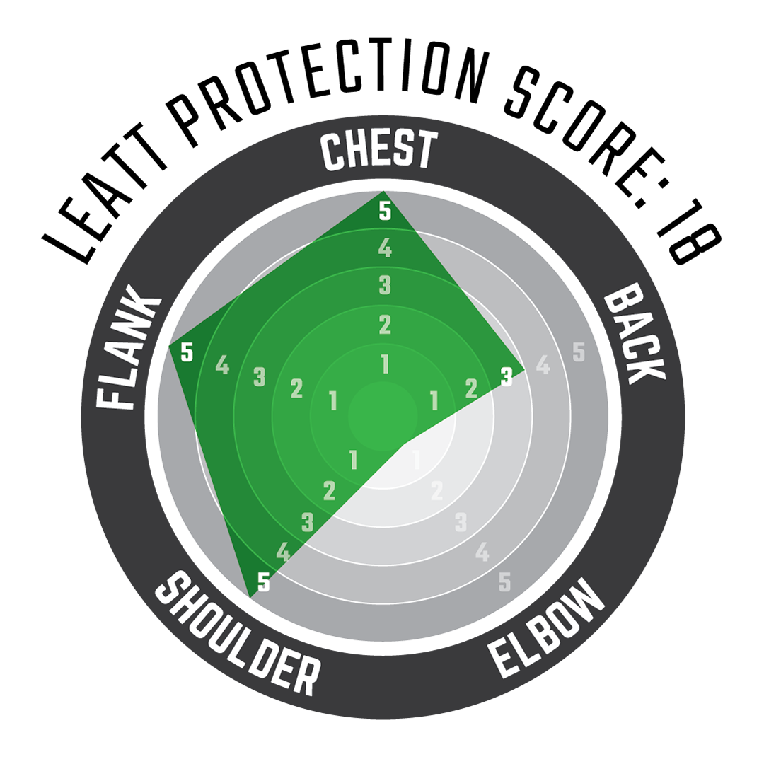 Has a Leatt protection score of 18 out of 25, next step up in protection level is the Body Protector 5.5.